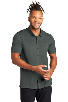Combining the smart tailoring of a woven shirt with the movement and comfort of a soft knit, this shirt eases between night and day. The polished silhouette complements office wear, while the moisture-wicking fabric makes it perfect for post-work play. A back yoke seam, notched vent hem and satin-finished buttons extend the contemporary profile. Fabric+Weight • 5.5-ounce, 55/40/5 cotton/poly/spandex diamond pique Features+Benefits • Moisture-wicking • Self-fabric, button-down collar • Rimmed, black satin-finished buttons (White buttons on white) • Back yoke • Self-turned cuffs and hem • Notched vents